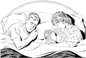Además a mí me aporta algo que es infinitamente incalculable, una paz, una armonía, increible, sentir a tu hijo abrazándote, su respiración, darte los buenos días, así, no tiene precio, como en todo, hay detractores, pero, haciendo un colecho con las normas básicas, no ser fumador, no estar muy obeso, no ingerir alcohol... el colecho, es sano y seguro, y altamente recomendable.
